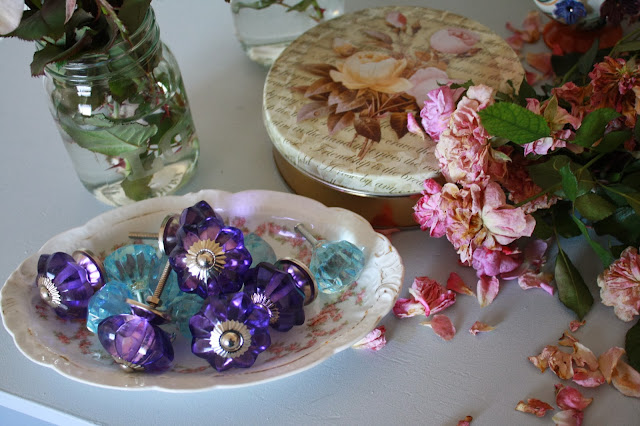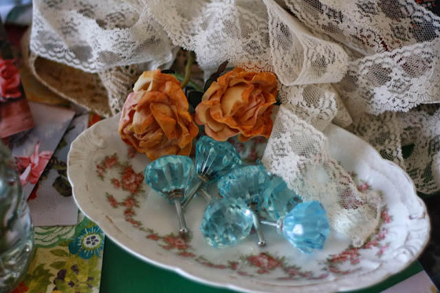 I bought these aquamarine pulls at Michael's – $1.00 awhile ago. Didn't know exactly what was I going to do with them back then... now I know! Perfect color too!