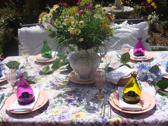 Ah, Cielo, your settings are always so beautiful and romantic! I love all of your dinnerware and napkins, tablecloths, flowers...everything!